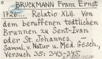 BRUCKMANN Franz Ernst 1726... Relatio XLII. Von dem beruffenen tödtlichen Brunnen zu Sent-Ivan oder St. Johannes.