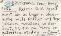 BRUCKMANN Franz Ernst 1726... Relatio XLIV. Specificiret die in Ungarn observirte wilde Kräuter und Vegetabilien, meistens zu der Zeit, da sie im Flore angetroffen worden.