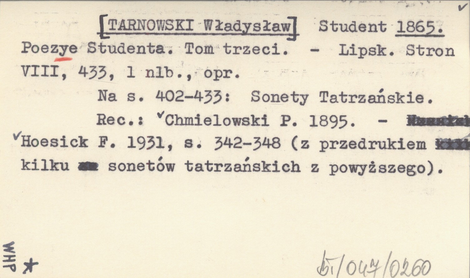 Lipsk , T. 3, VIII, 433, [1] s., opr. Na s. 402-433: Sonety Tatrzańskie. REC: CHMIELOWSKI P. 1895 ; HOESICK F. 1931: 342-348 (z przedrukiem kilku sonetów tatrzańskich z powyższego) ;