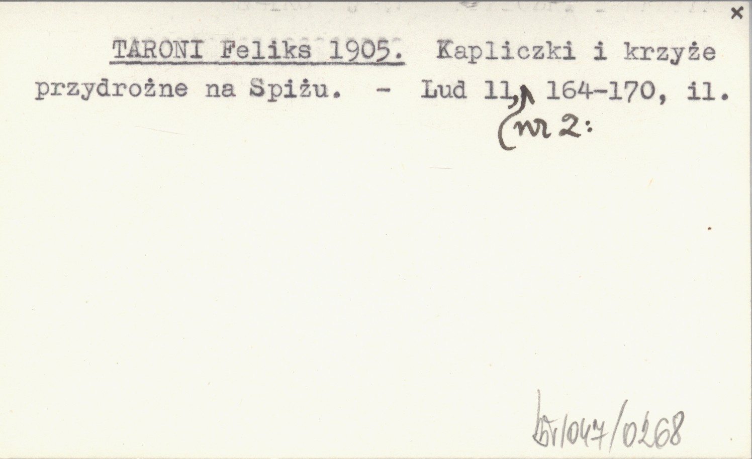 TARONI Feliks 1905 Kapliczki i krzyże przydrożne na Spiżu.
