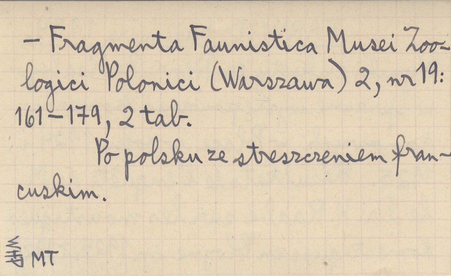 Fragmenta Faunistica Musei Zoologici Polonici (Warszawa) , 2, nr 19: 161-179, 2 k. Po polsku ze streszczeniem francuskim.