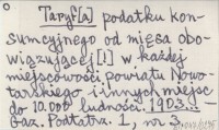 Taryf[a] podatku konsumpcyjnego od mięsa obowiązującej [!] w każdej miejscowości powiatu Nowotarskiego i innych miejsc do 10.000 ludności. 1903...