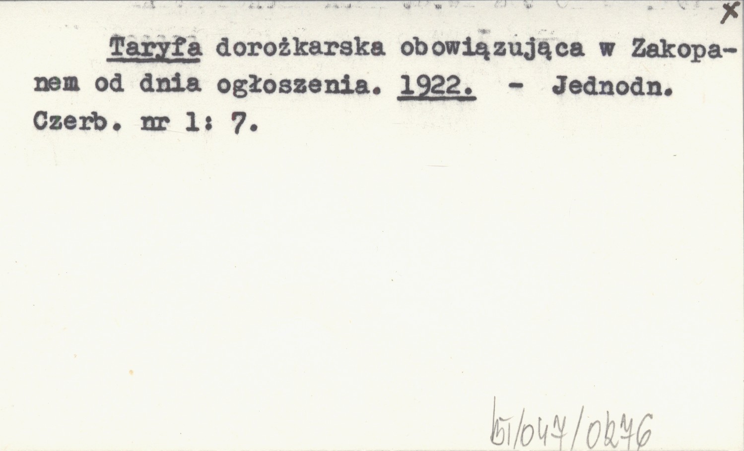 Taryfa dorożkarska obowiązująca w Zakopanem od dnia ogłoszenia. 1922