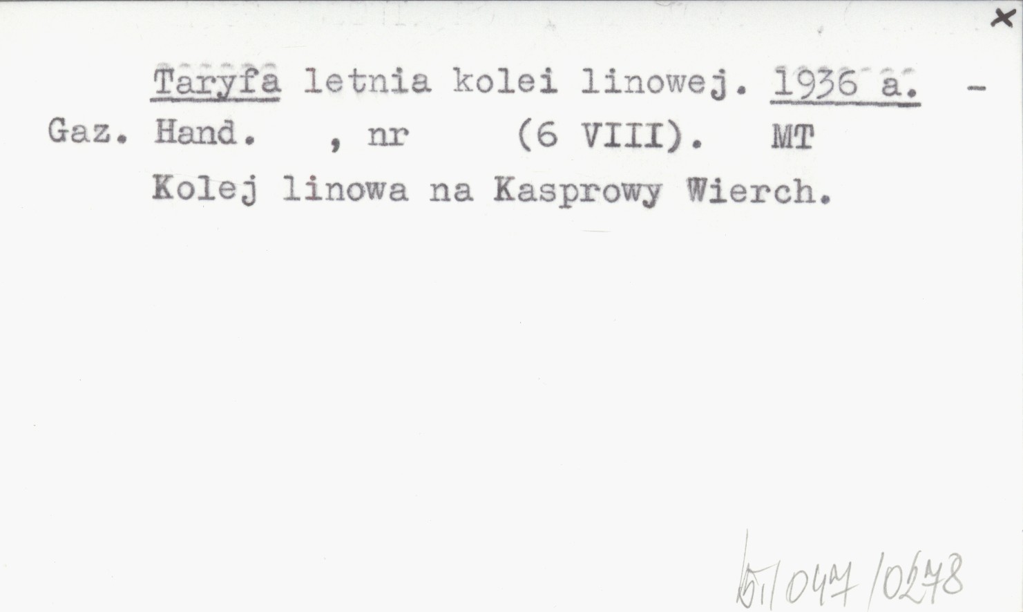 Gazeta Handlowa, 6 VIII. Kolej linowa na Kasprowym Wierchu.