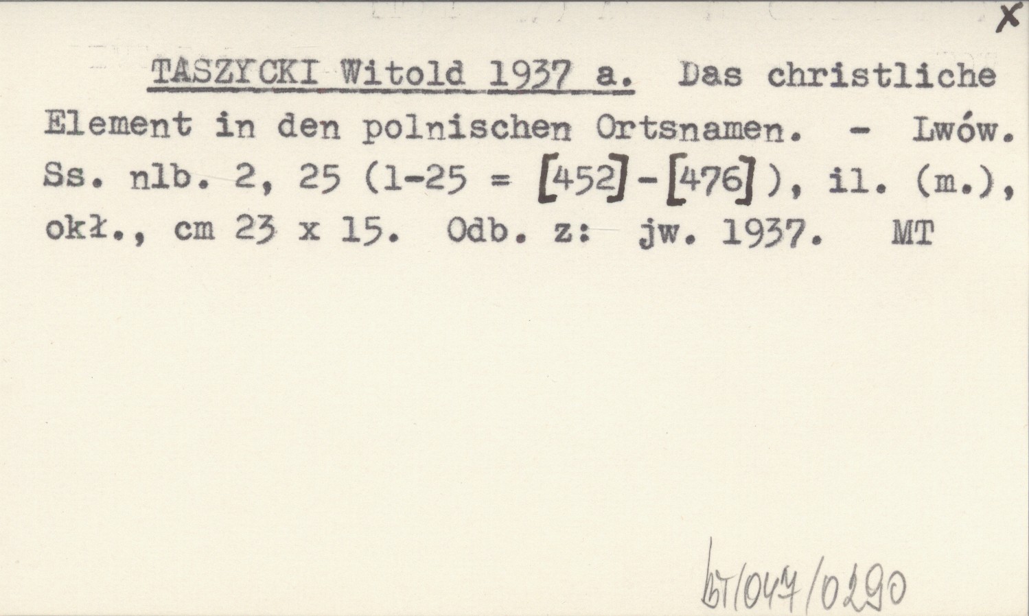 Das christliche Element in den polnischen Ortsnamen.
