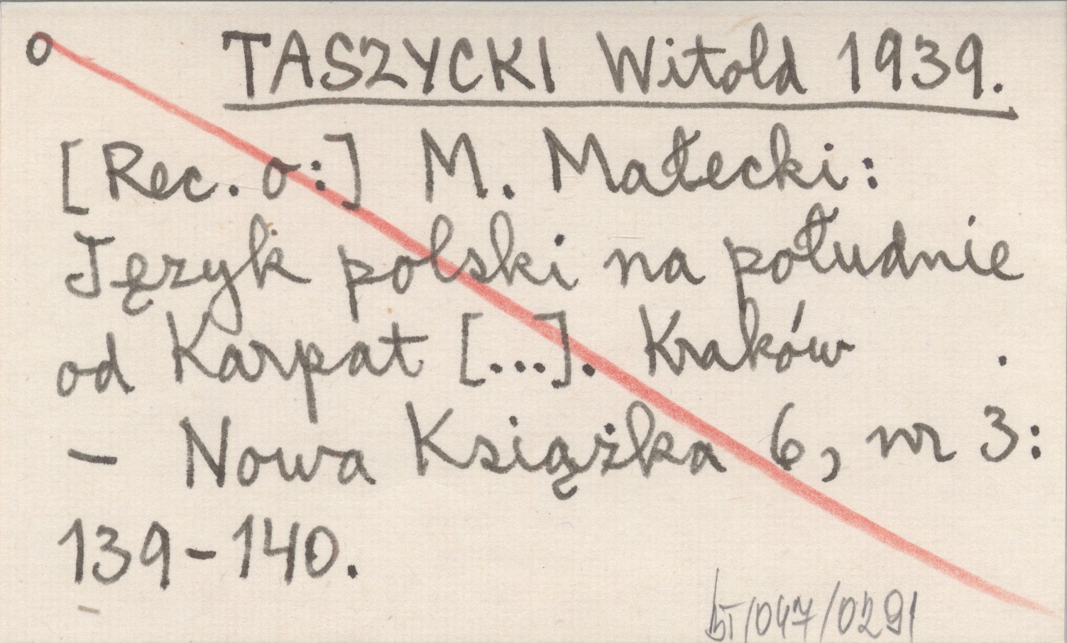 TASZYCKI Witold 1939 [Rec. o:] M. Małecki: Język polski na południe od Karpat [...]. Kraków.