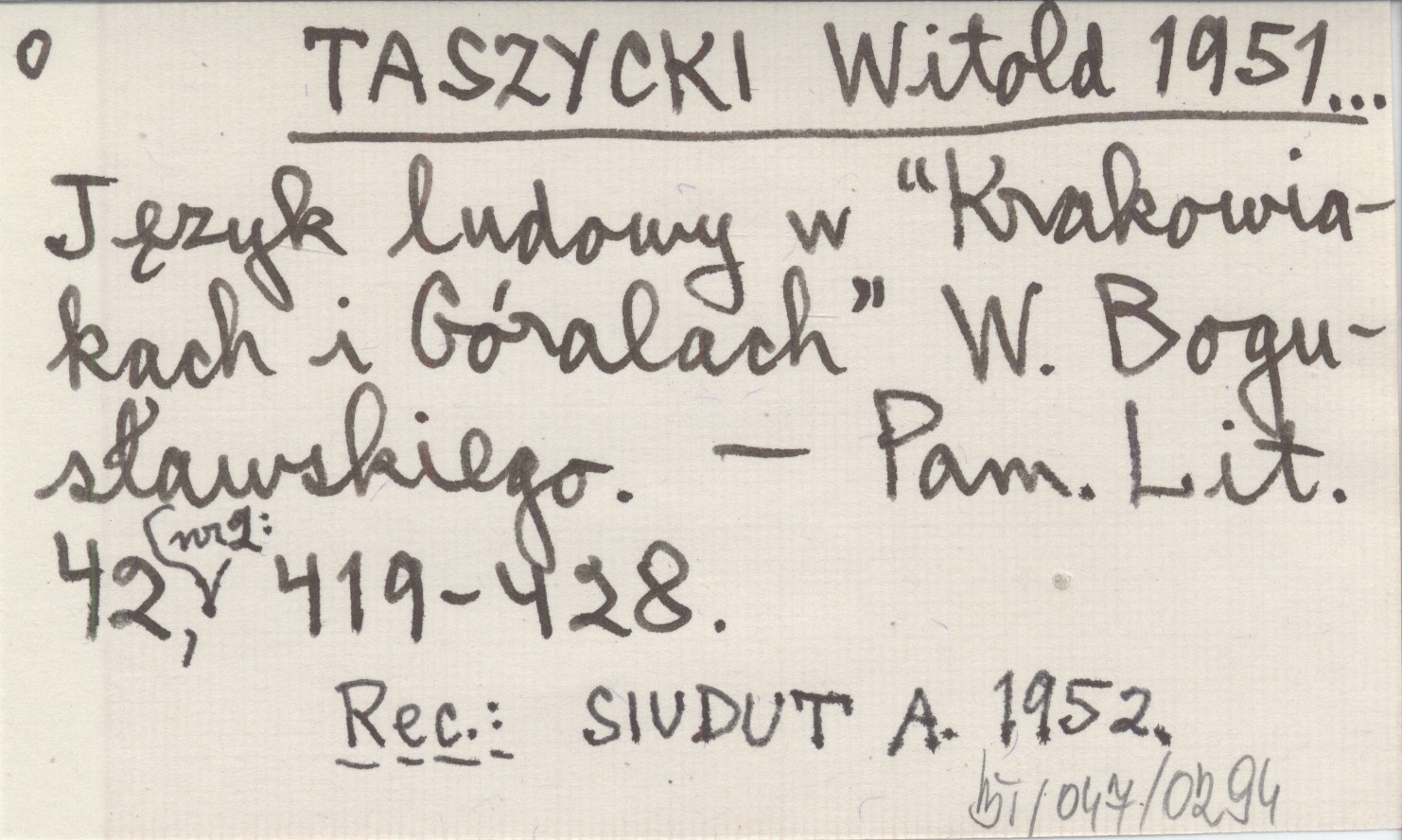 Pamiętnik Literacki, 42, nr 2: 419-428. REC: SIUDUT A. 1952