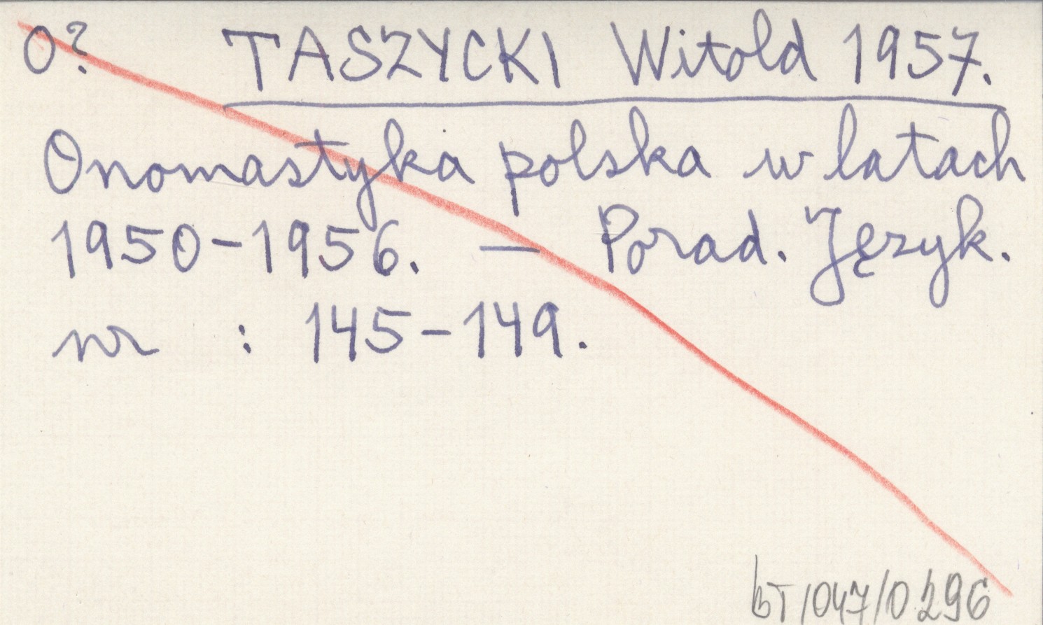 TASZYCKI Witold 1957 Onomastyka polska w latach 1950-1956.