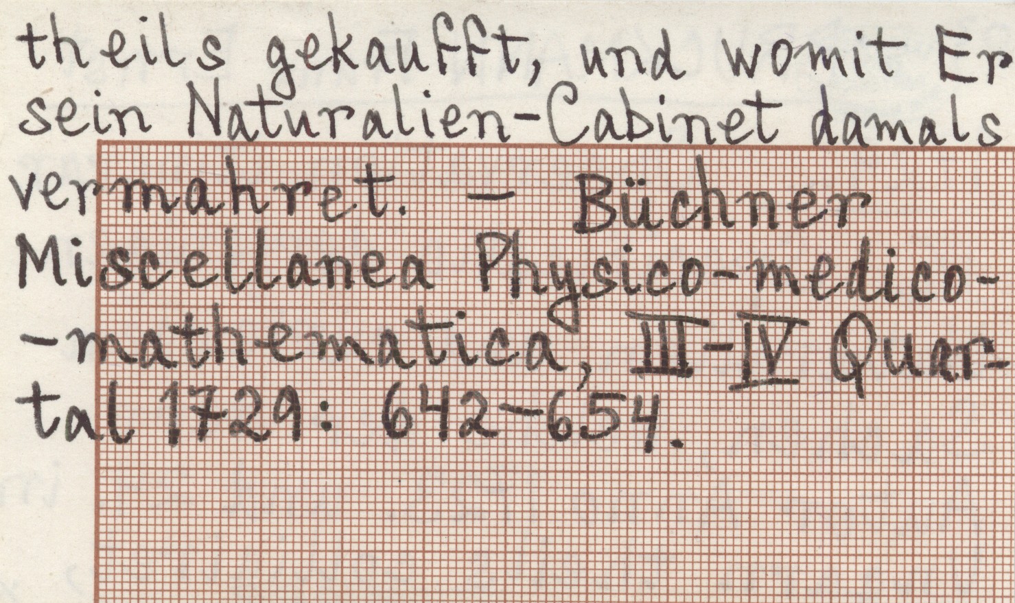 Büchner Miscellanea Physico-medico-mathematica, III-IV Quartal 1729: 642-654.