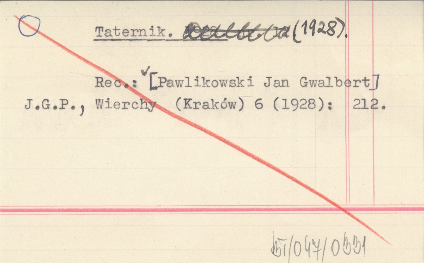 Taternik, REC: [PAWLIKOWSKI Jan Gwalbert] J. G. P., Wierchy (Kraków) 6 (1928): 212.