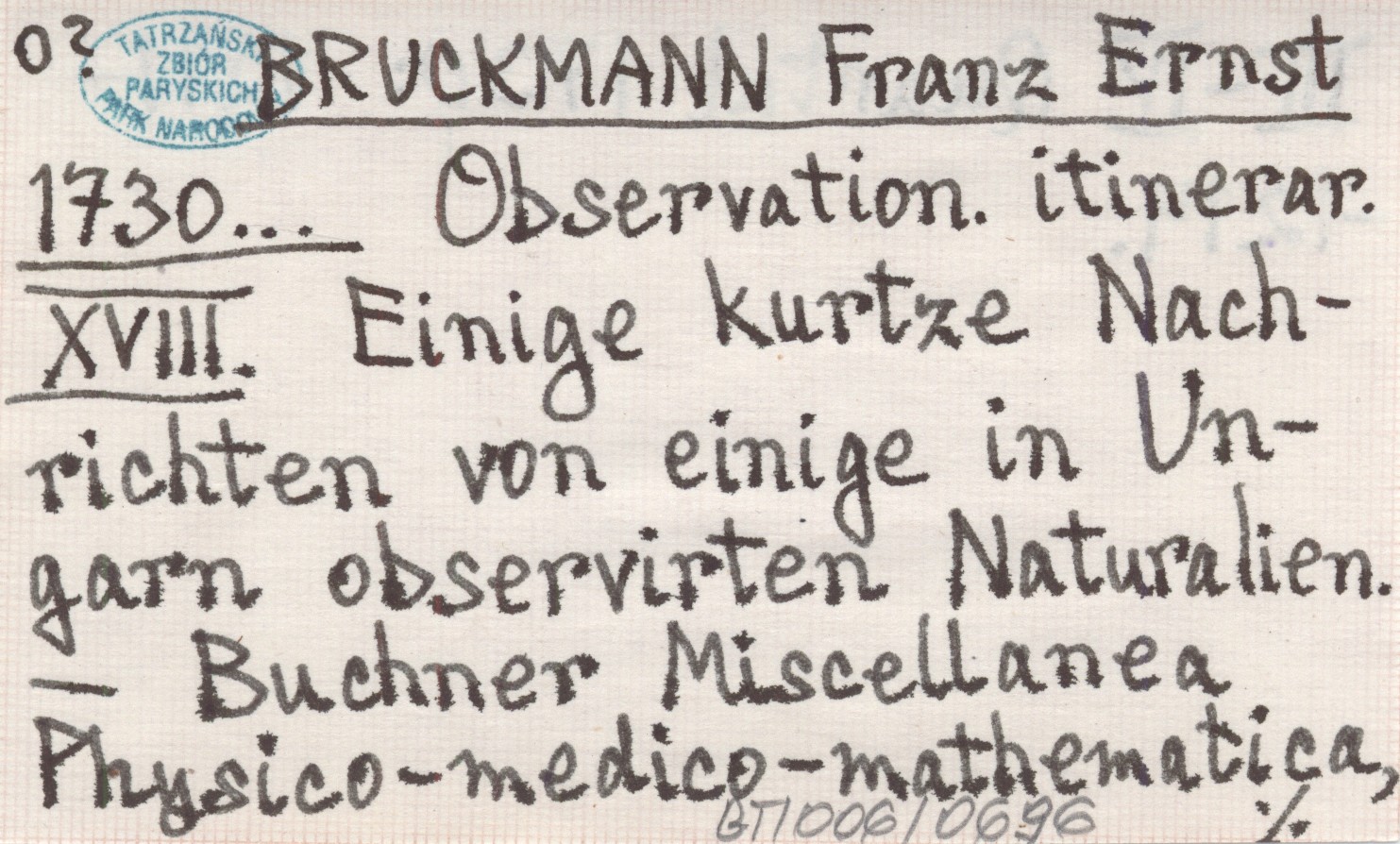 BRUCKMANN Franz Ernst 1730... Observation. itinerar. XVIII. Einige kurtze Nachrichten von einige in Ungarn observirten Naturalien.