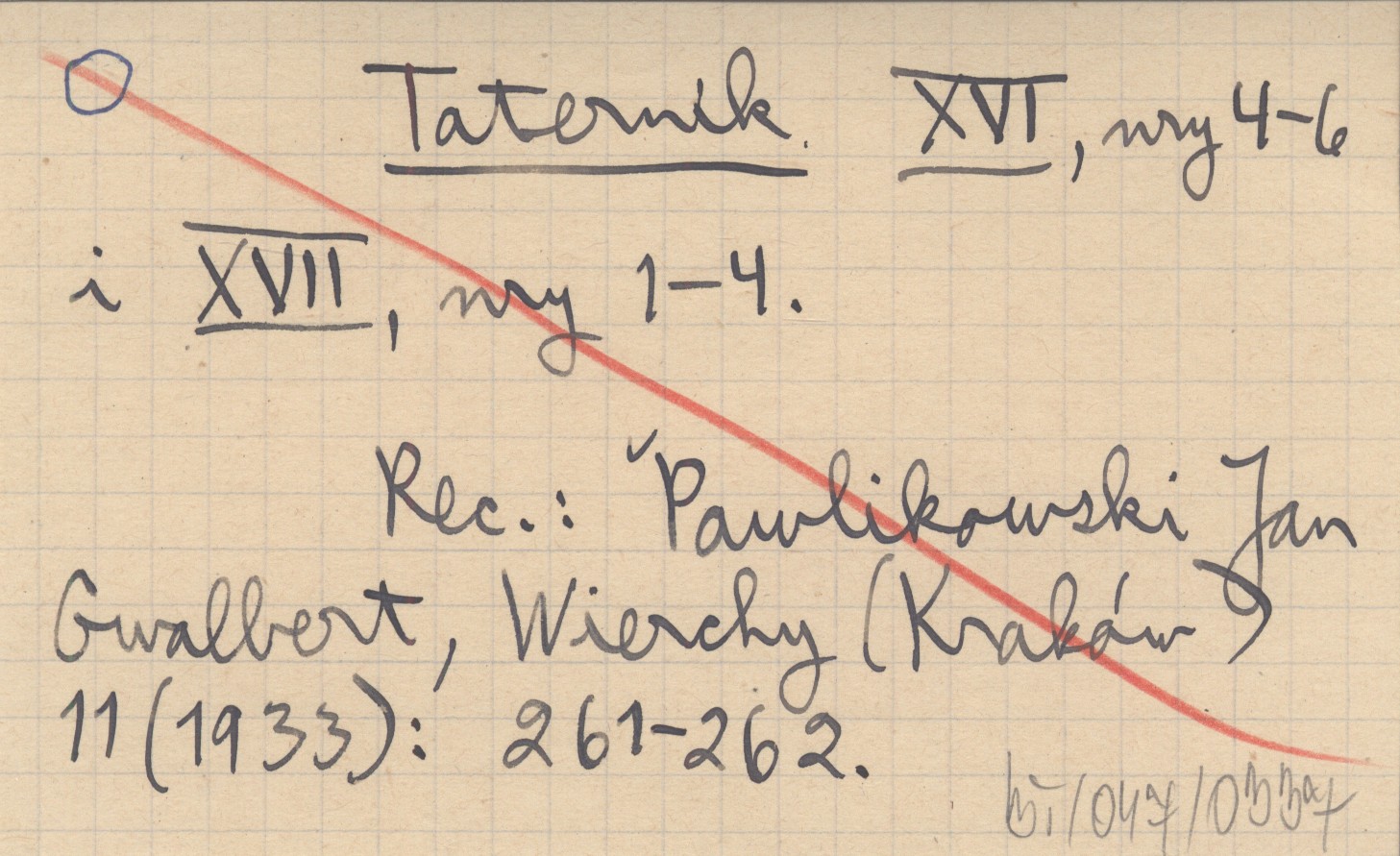 Taternik, XVI, nr 4-6 ; XVII, nr 1-4. REC: PAWLIKOWSKI Jan Gwalbert, Wierchy (Kraków) 11 (1933): 261-262.