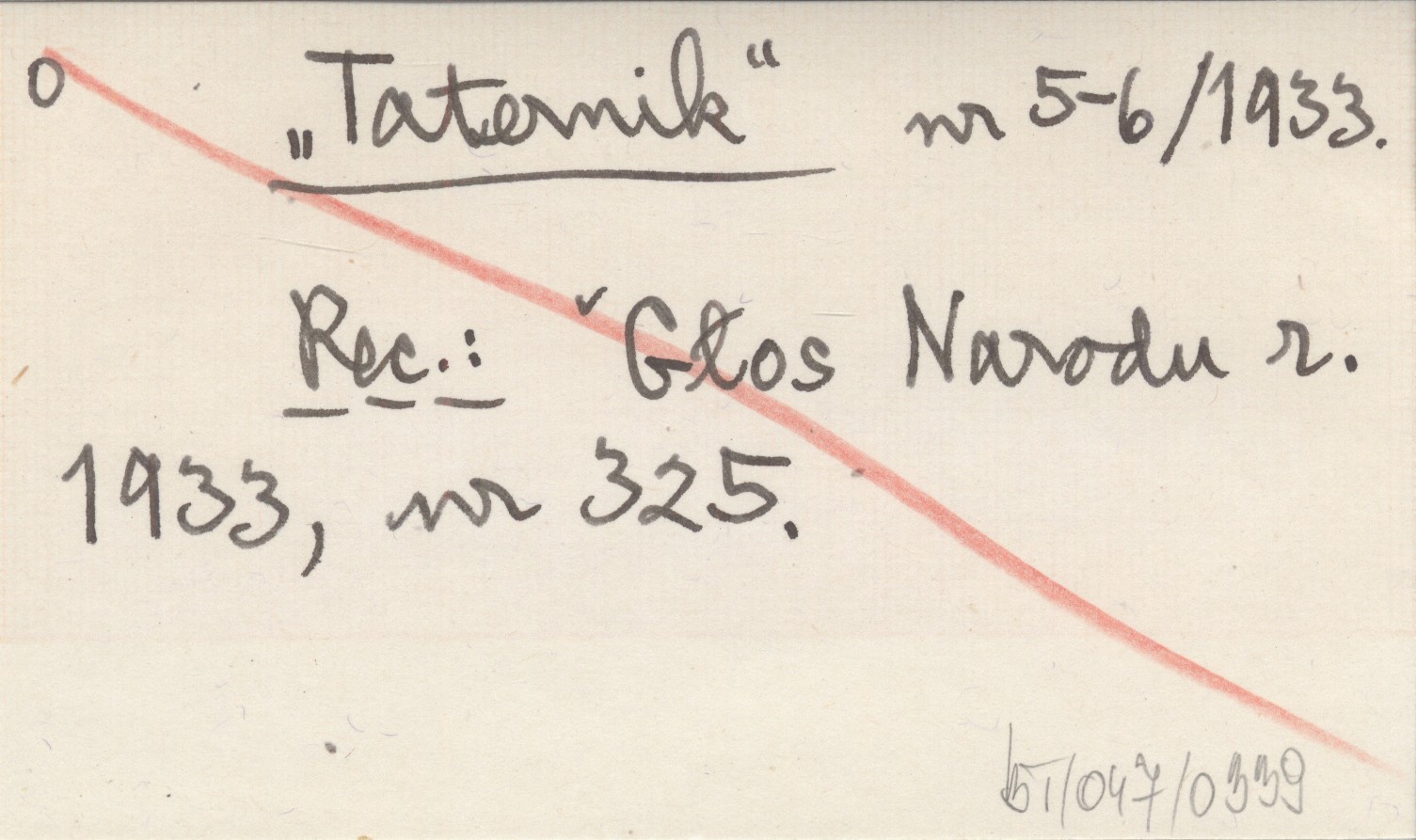 Taternik, 1933, nr 5-6. REC: Głos Narodu 1933, nr 325.