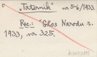 Projekt Digitalizacja fiszek z Bibliografią Tatr i Podtatrza Witolda Henryka Paryskiego jest finansowany ze środków Ministra Kultury i Dziedzictwa Narodowego oraz Tatrzańskiego Parku Narodowego.