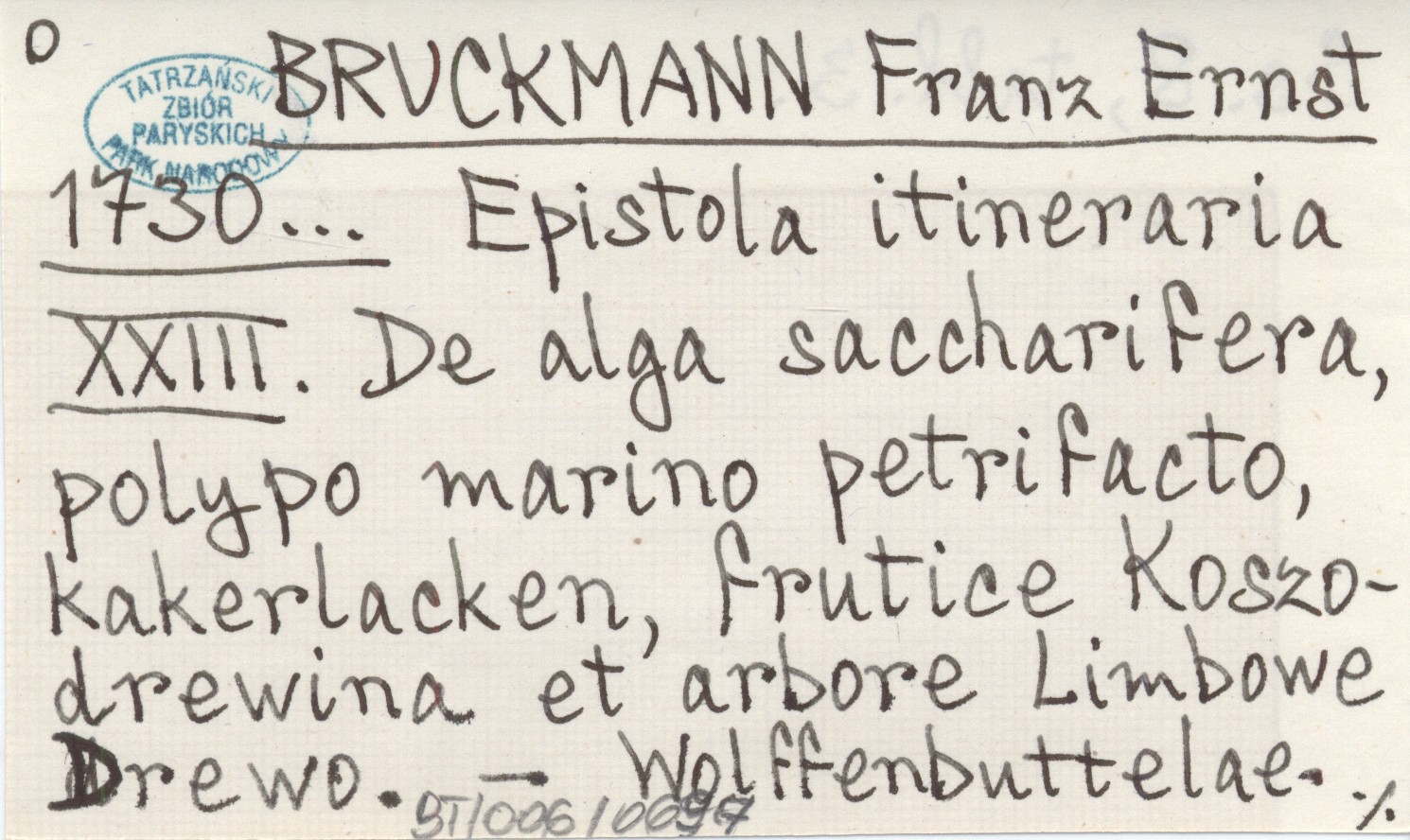 BRUCKMANN Franz Ernst 1730... Epistola itineraria XXIII. De alga saccharifera, polypo marino petrifacto, kakerlacken, frutice Koszodrewina et arbore Limbowe Drewo.