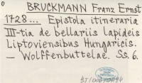 BRUCKMANN Franz Ernst 1728... Epistola initeraria III-tia de bellariis lapideis Liptoviensibus Hungaricis.