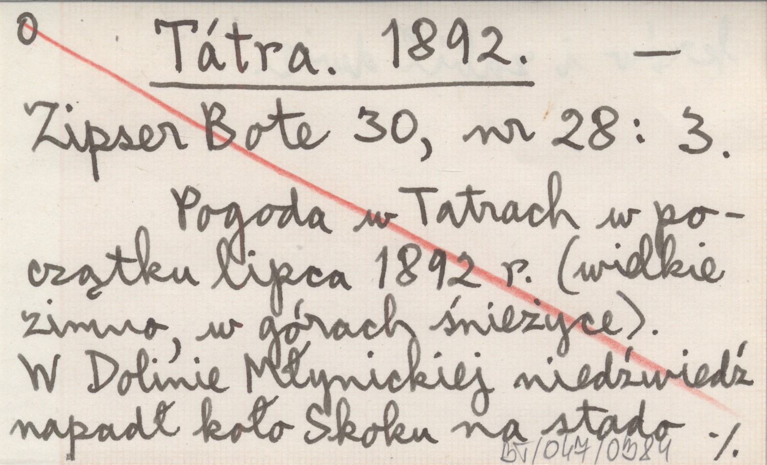 Zipser Bote, 30, nr 28: 3. Pogoda w Tatrach w początku lipca 1892 r. (wielkie zimno, w górach śnieżyce). W Dolinie Młynickiej niedźwiedź napadł koło Skoku na stado krów i zabił dwie.