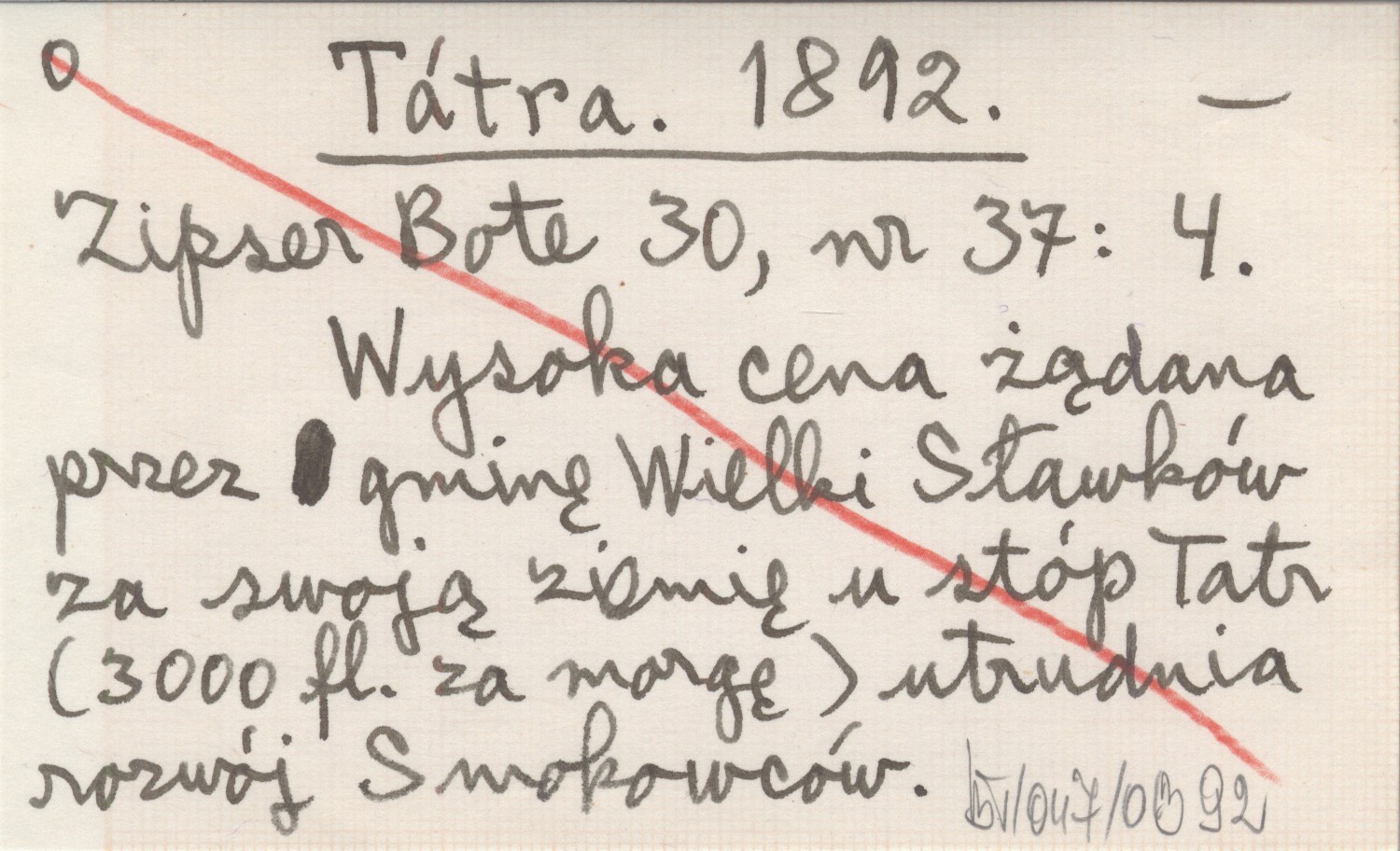 Zipser Bote, 30, nr 37: 4. Wysoka cena żądana przez gminę Wielki Sławków za swoją ziemię u stóp Tatr (3000 fl. za morgę) utrudnia rozwój Smokowców.