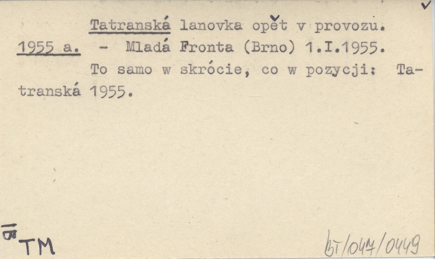Mladá Fronta (Brno) , 1 I 1955. To samo w skrócie, co w pozycji: Tatranská 1955.