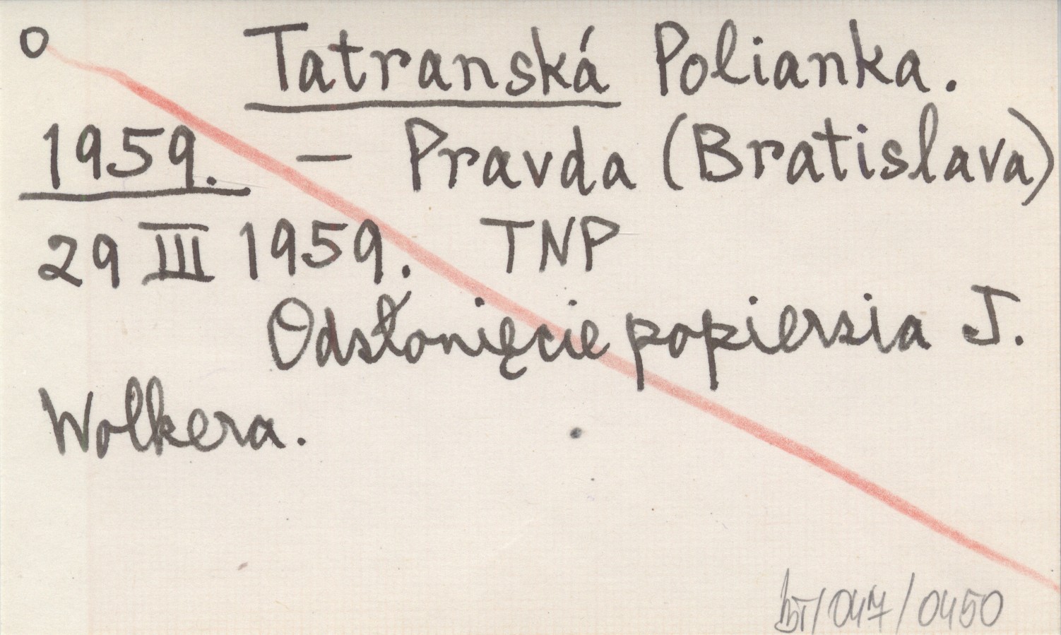 Pravda (Bratislava) , 29 III 1959. Odsłonięcie popiersia J. Wolkera.