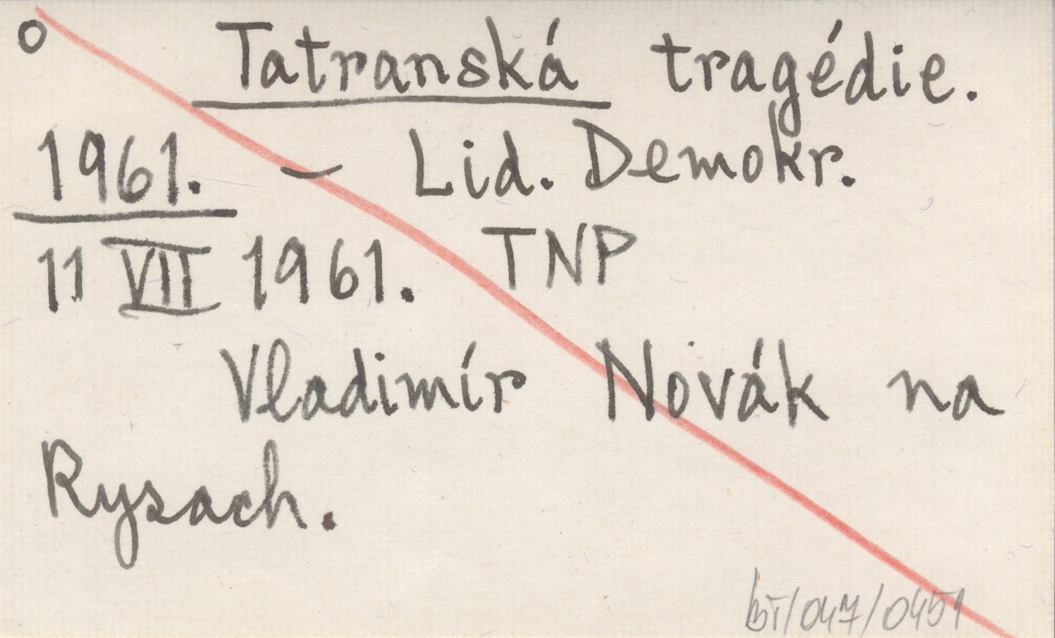 Lidová Demokracie, 11 VII 1961. Vladimír Novák na Rysach.