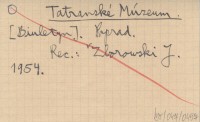 Projekt Digitalizacja fiszek z Bibliografi± Tatr i Podtatrza Witolda Henryka Paryskiego jest finansowany ze ¶rodków Ministra Kultury i Dziedzictwa Narodowego oraz Tatrzańskiego Parku Narodowego.