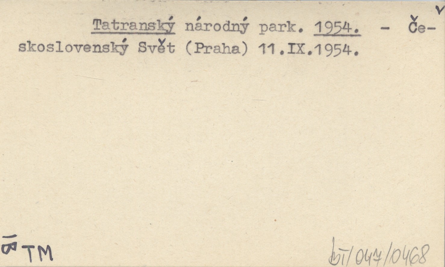Československý Svět (Praha) , 11 IX 1954.