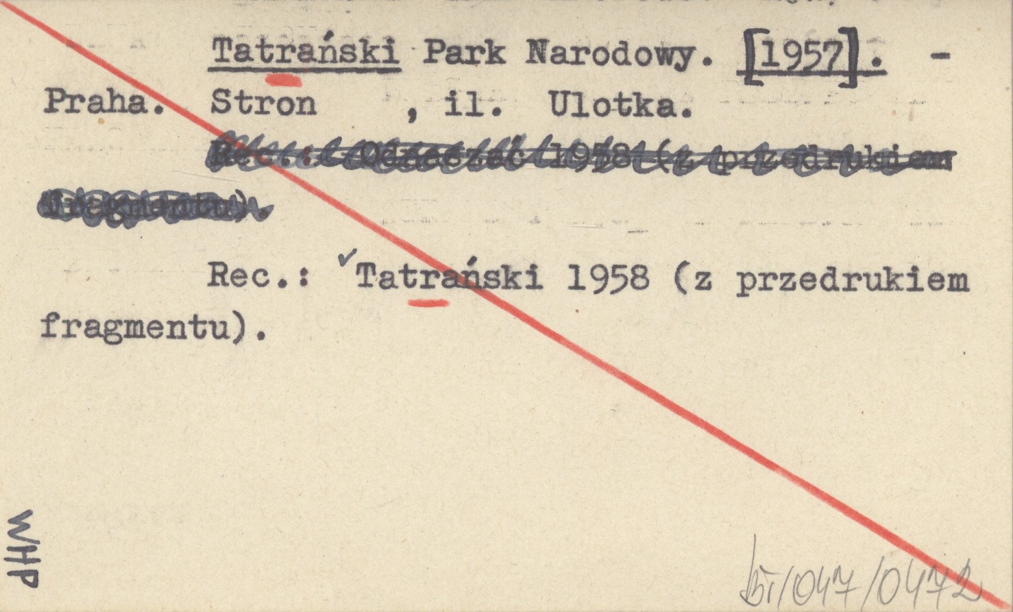 Praha , Il. Ulotka. REC: Tatrański 1958 (z przedrukiem fragmentu).
