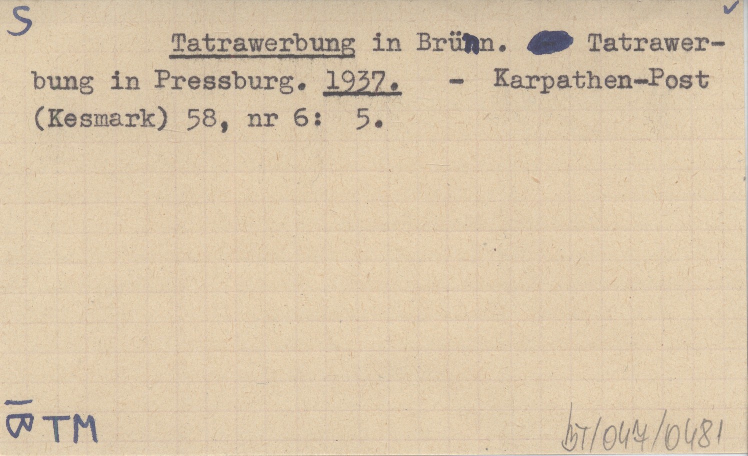 Tatrawerbung in Brünn. Tatrawerbung in Pressburg. 1937