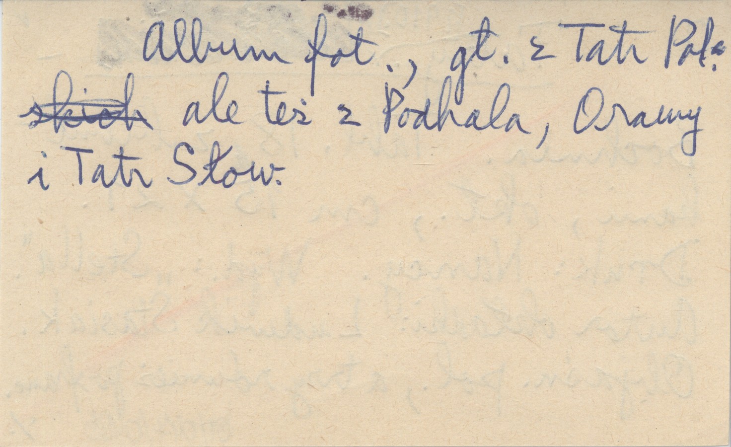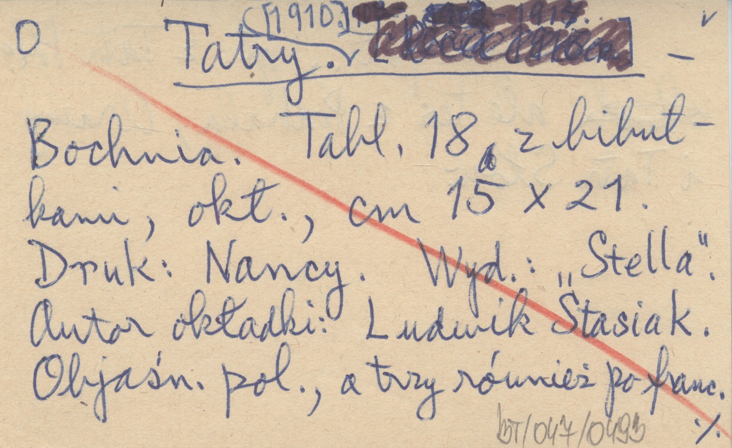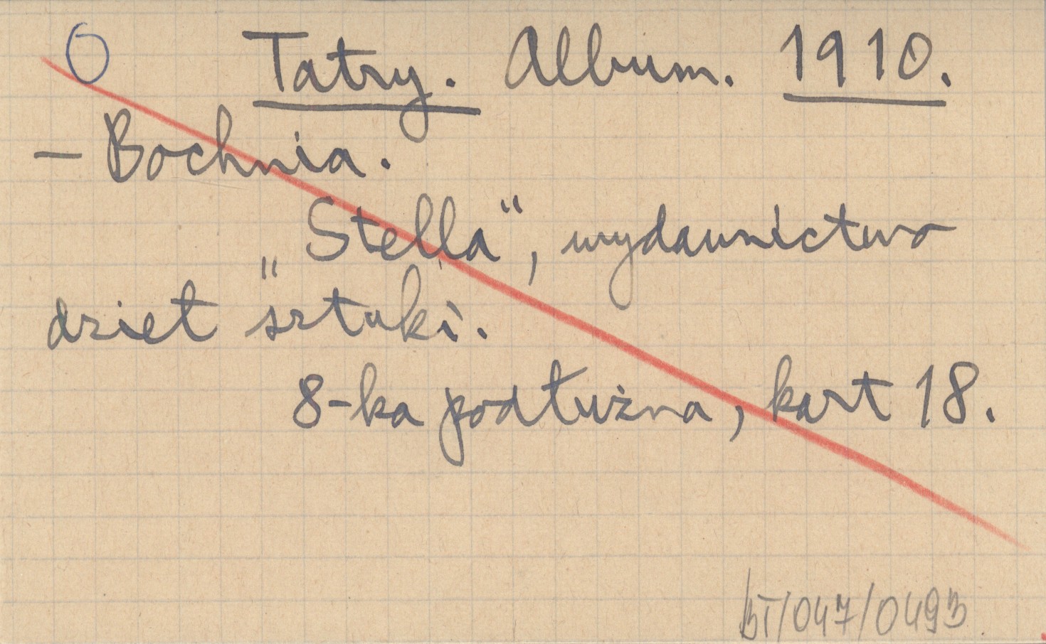 Stella, Bochnia , 18 k., okł., 15x21 cm., 8°. Album fotograficzny, głównie z Tatr Polskich ale też z Podhala, Orawy i Tatr Słowackich. Druk: Nancy. Autor okładki: Ludwik Stasiak. Objaśnienia polskie, a trzy również po francusku.