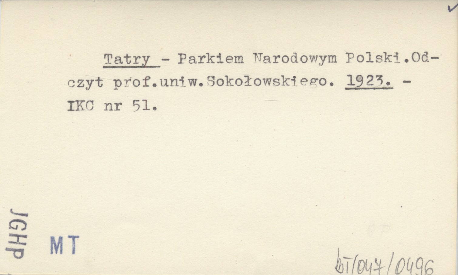Tatry -Parkiem Narodowym Polski. Odczyt prof. uniw. Sokołowskiego. 1923