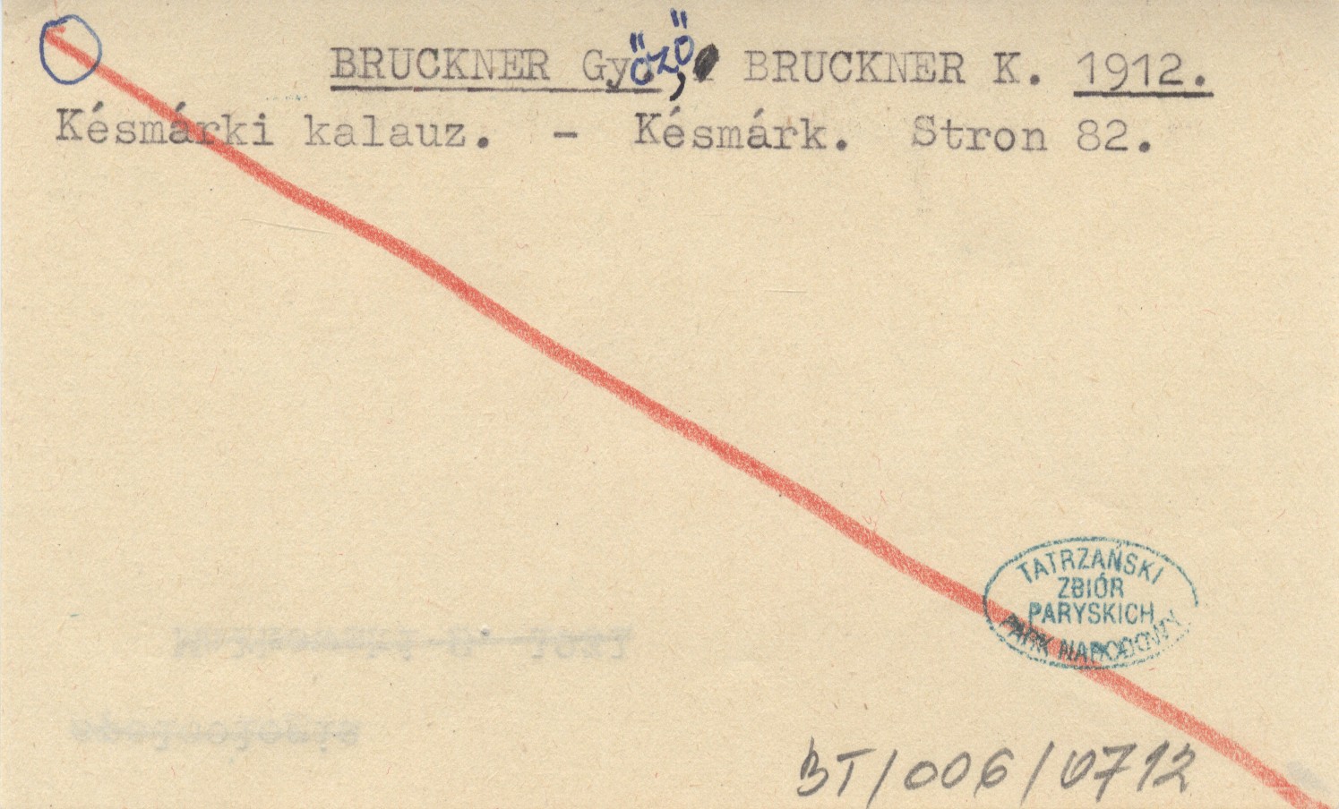 BRUCKNER Győző BRUCKNER, K. ; 1912 Késmárki kalauz.