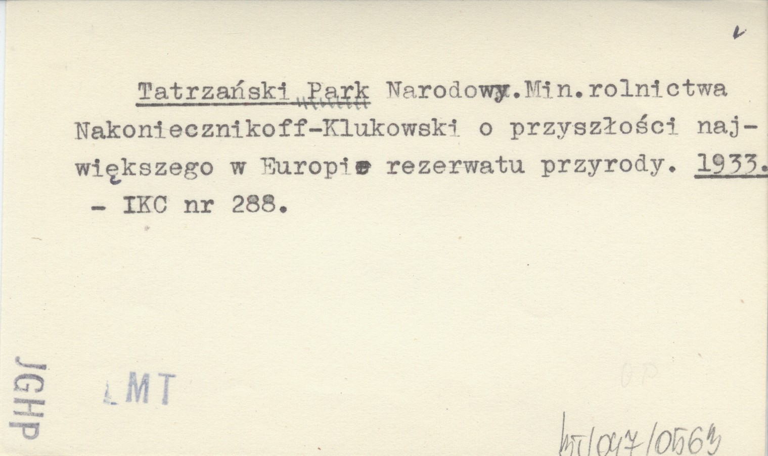Tatrzański Park Narodowy. Min. rolnictwa Niekoniecznikoff-Klukowski o przyszłości największego w Europie rezerwatu przyrody. 1933