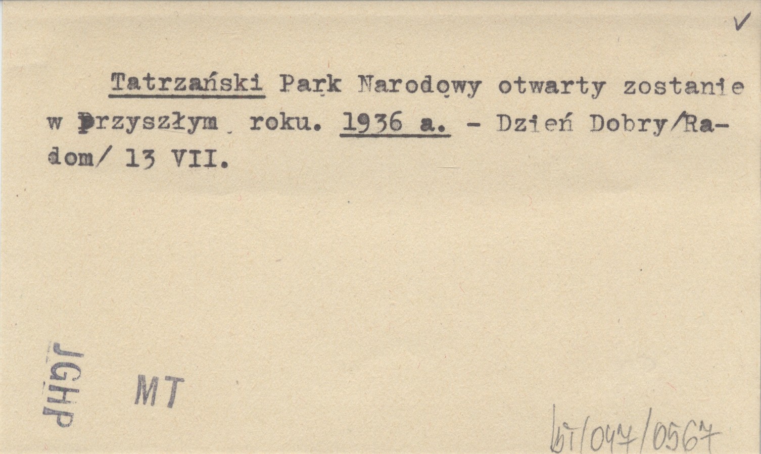 Tatrzański Park Narodowy otwarty zostanie w przyszłym roku. 1936 a