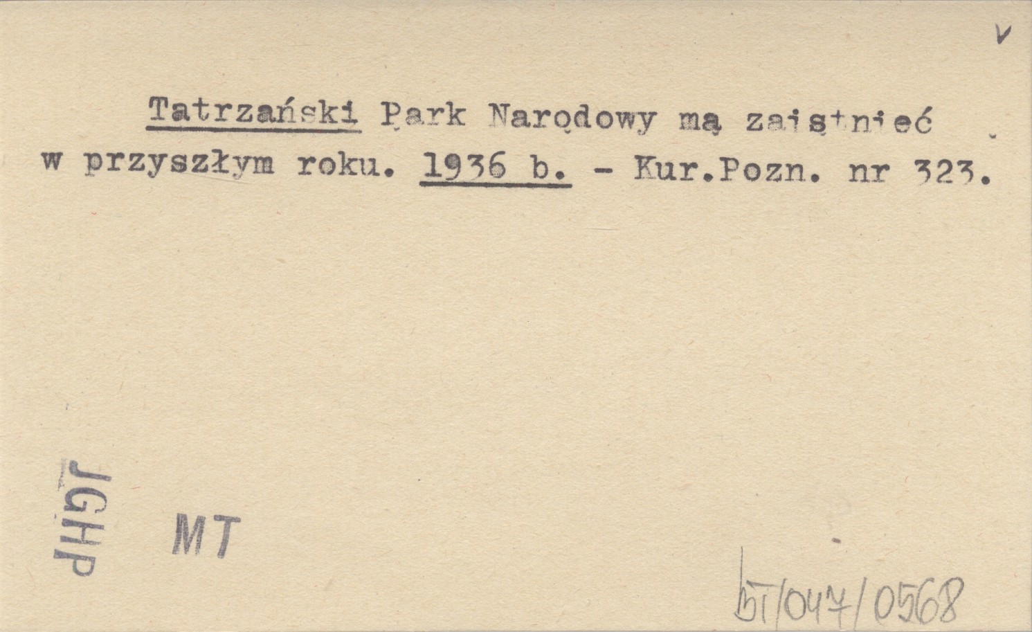 Tatrzański Park Narodowy ma zaistnieć w przyszłym roku. 1936 b