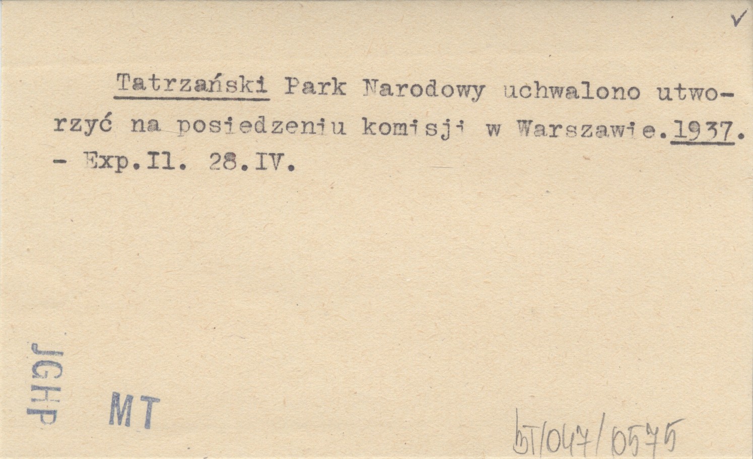 Tatrzański Park Narodowy uchwalono utworzyć na posiedzeniu komisji w Warszawie. 1937