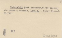 Tatrzański park narodowy. Kiedy zaczną się prace w terenie. 1936 d