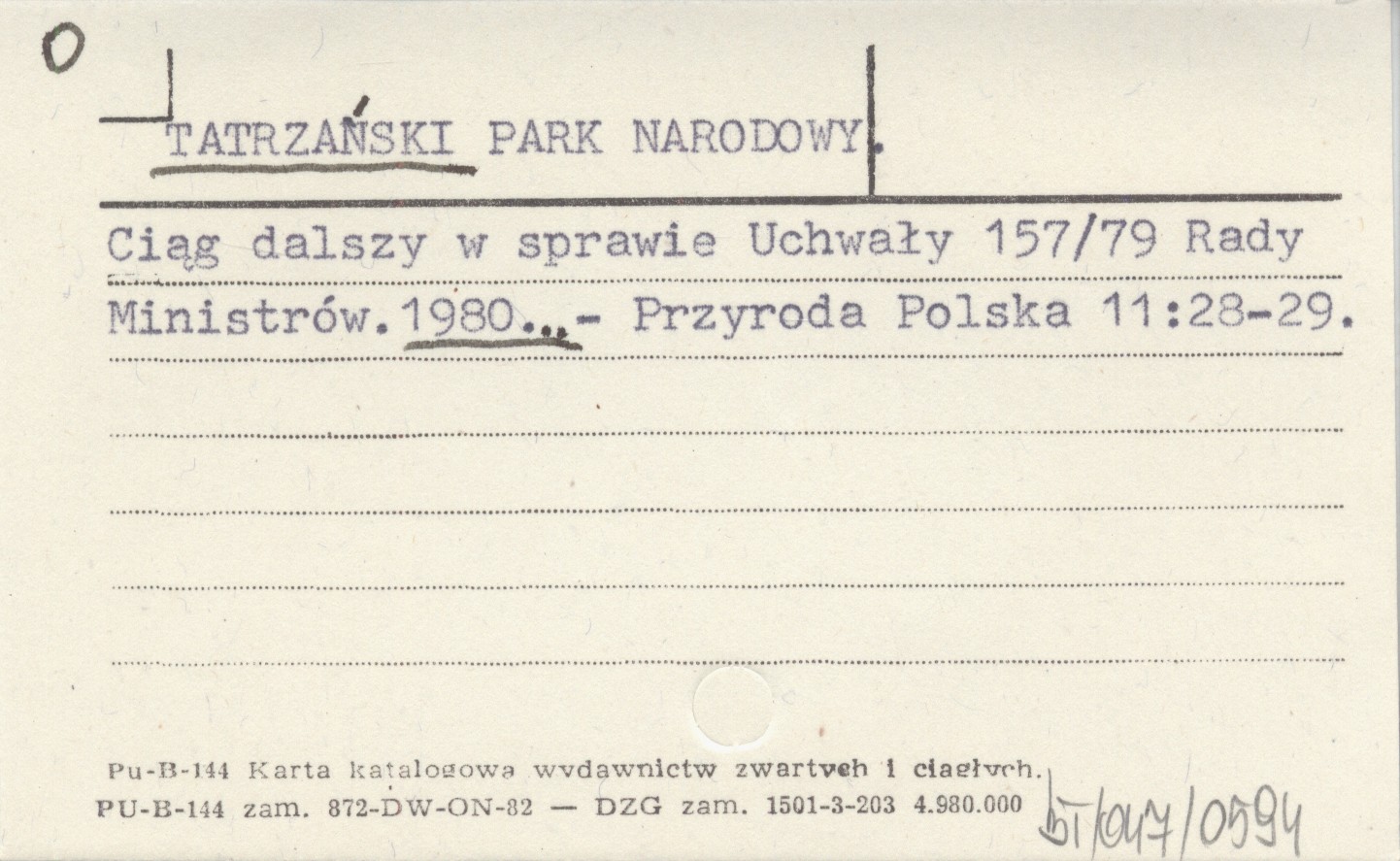 Tatrzański Park Narodowy. Ciąg dalszy w sprawie Uchwały 157/79 Rady Ministrów. 1980...