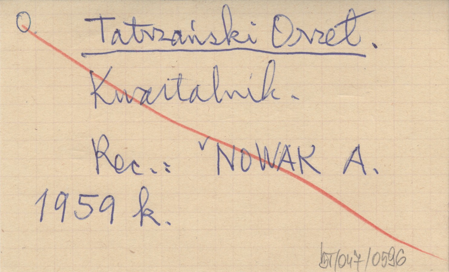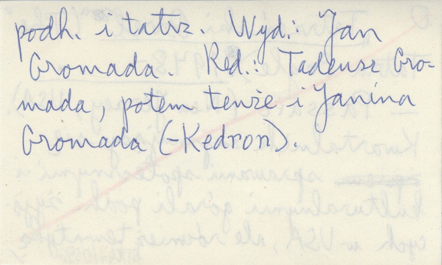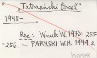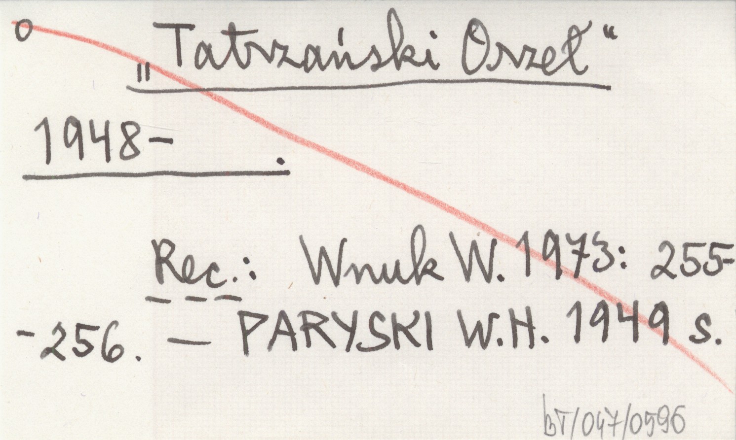 Jan Gromada, Tatrzański Orzeł (The Tatra Eagle) (Passaic (New Jersey, USA)) , 1948- . Kwartalnik zajmujący się sprawami społecznymi i kulturalnymi górali podhalańskich żyjących w USA, ale również tematyką podhalańską i tatrzańską. REC: NOWAK A. 1959 k ; WNUK W. 1973: 255-256 ; PARYSKI W. H. 1949 s ;