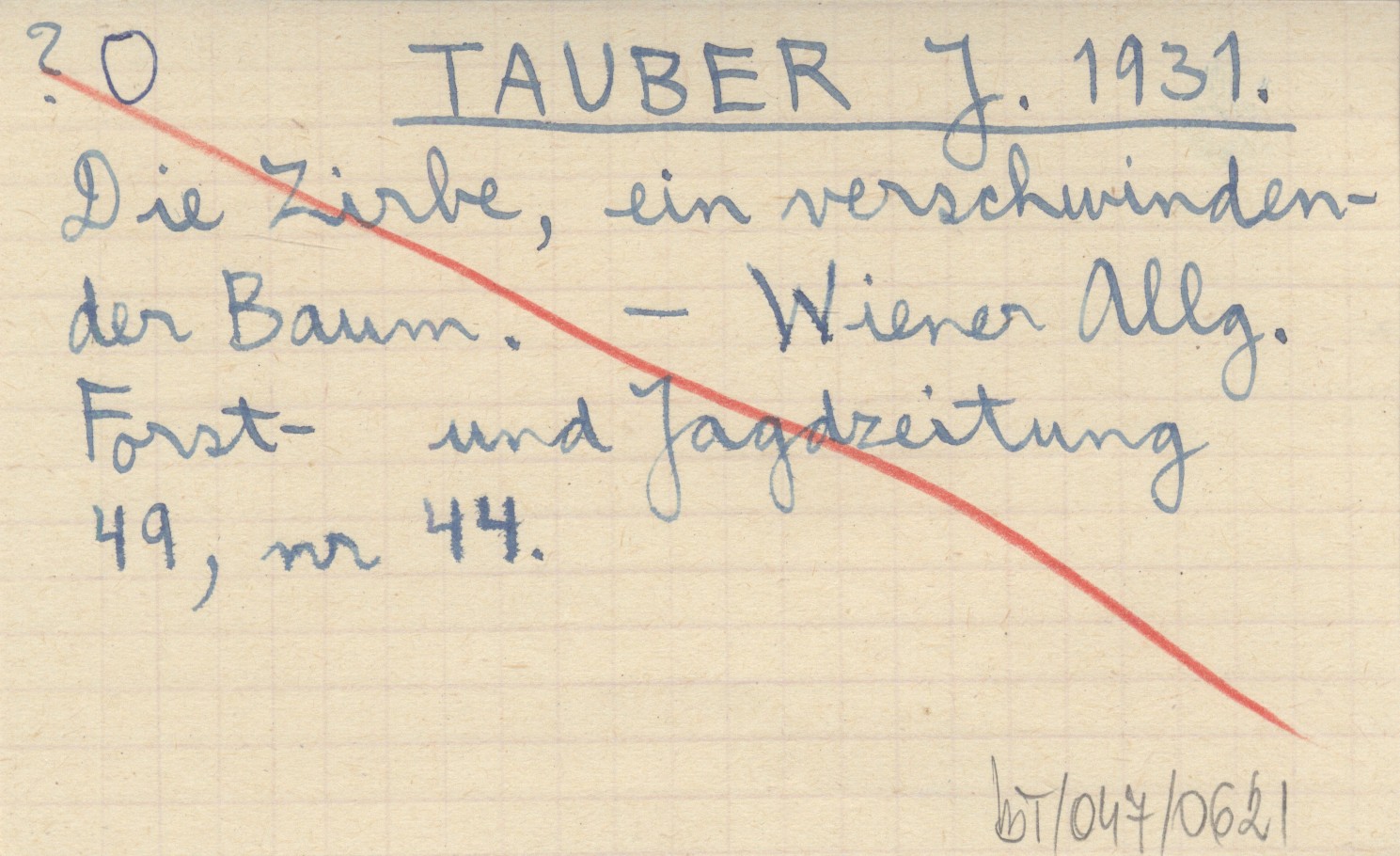 TAUBER J. 1931 Die Zirbe, ein verschwindender Baum.