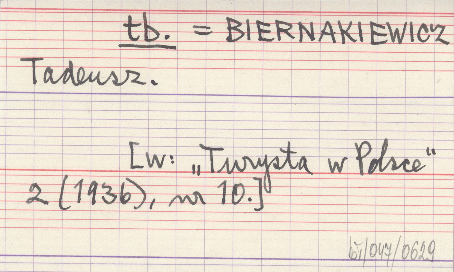 tb. BIERNAKIEWICZ Tadeusz Turysta w Polsce 2 (1936), nr 10.