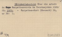 Tätigkeitsbericht über die Arbeit im Karpathenverein im Vereinsjahre 1928/29. 1929