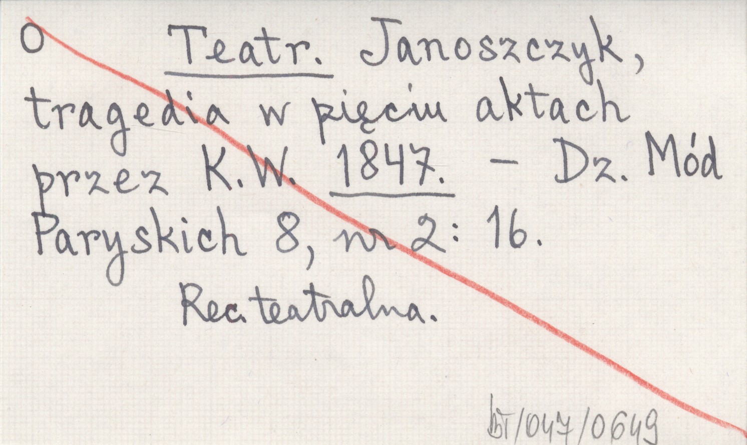 Teatr. Janoszczyk, tragedia w pięciu aktach przez K. W. 1847