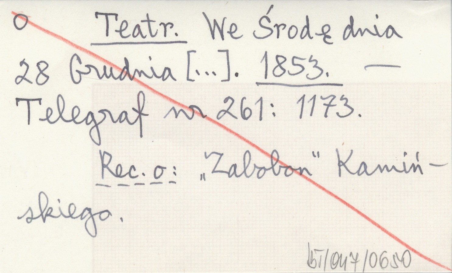 Telegraf, Nr 261: 1173. Recenzja o: "Zabobon" Kamińskiego.