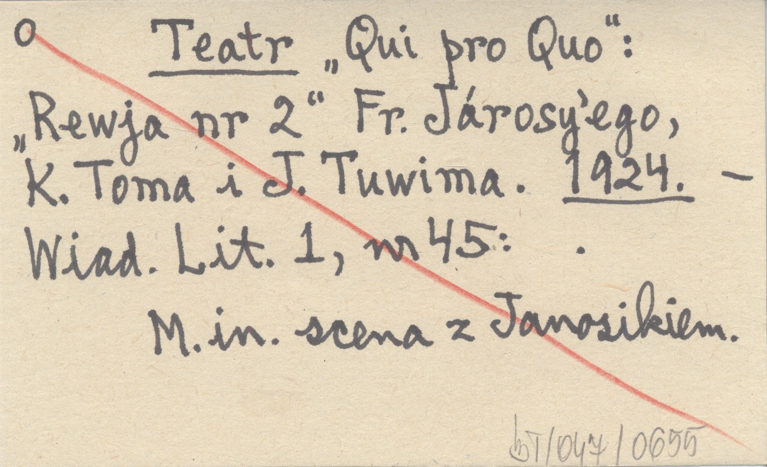 Teatr "Qui pro Quo": "Rewja nr 2" Fr. Járosy'ego, K. Toma i J. Tuwima. 1924