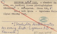 BRUCKNER Győző 1922 A késmárki ág. hitv. ev. kerületi liceum pártfogóságának története. [Geschichte des Patronates des evang. Distr.-Lyzeums A. B. in Kesmark.]