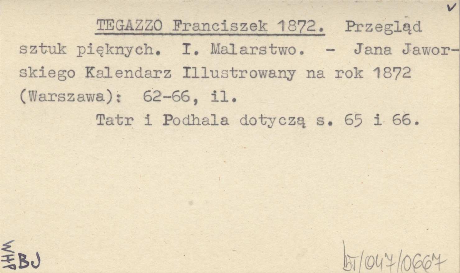 Jana Jaworskiego Kalendarz Illustrowany na rok 1872 (Warszawa) , S. 62-66, il. Tatr i Podhala dotyczą s. 65 i 66.