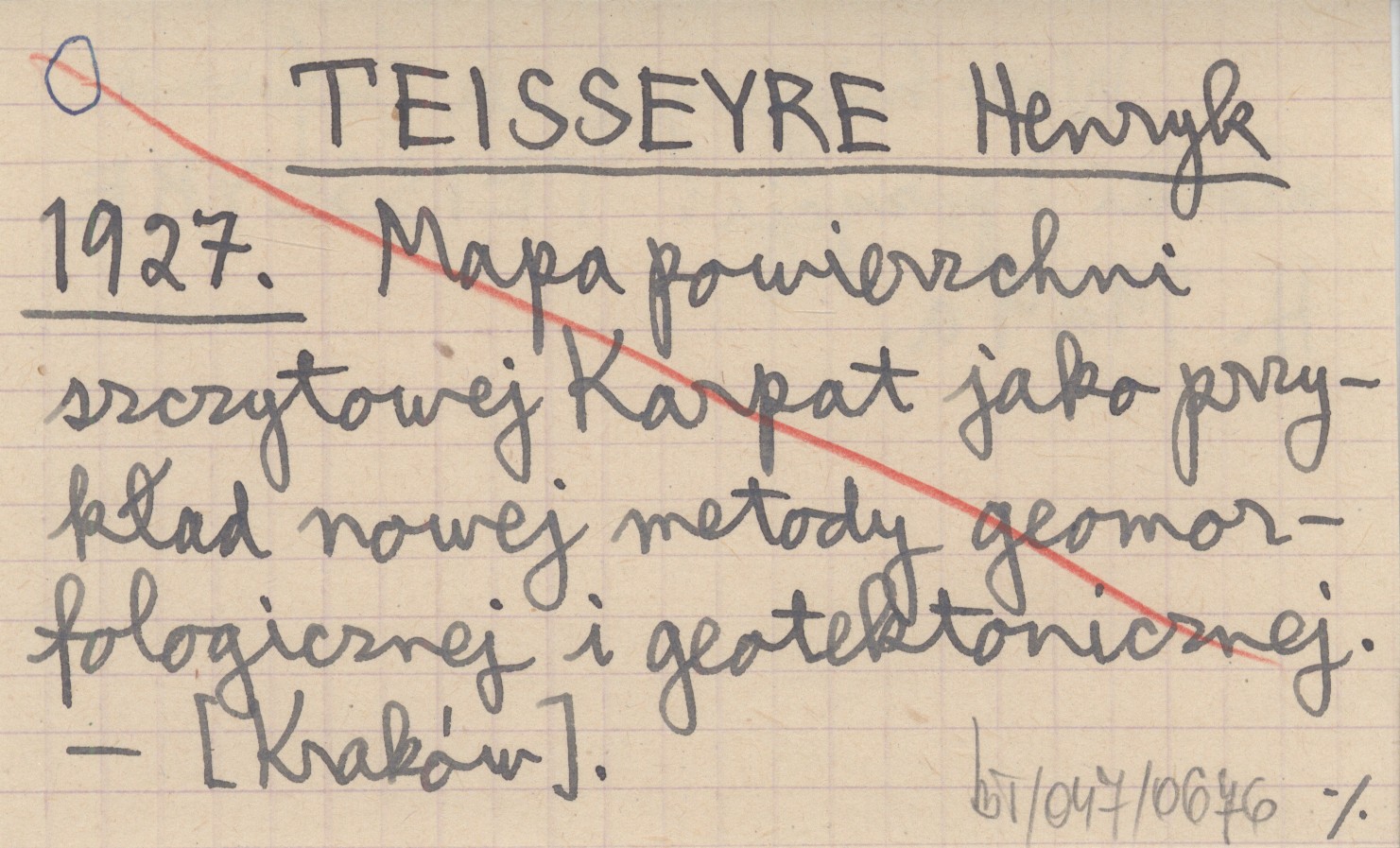 TEISSEYRE Henryk 1927 Mapa powierzchni szczytowej Karpat jako przykład nowej metody geomorfologicznej i geotektonicznej.