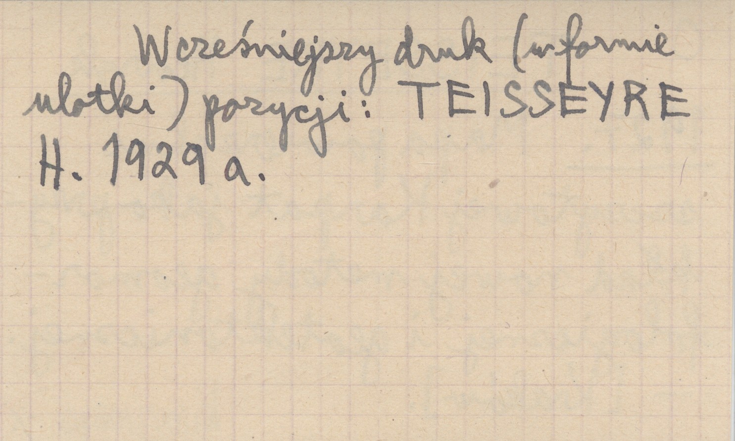 [Kraków] , Wcześniejszy druk (w formie ulotki) pozycji: TEISSEYRE H. 1929 a.