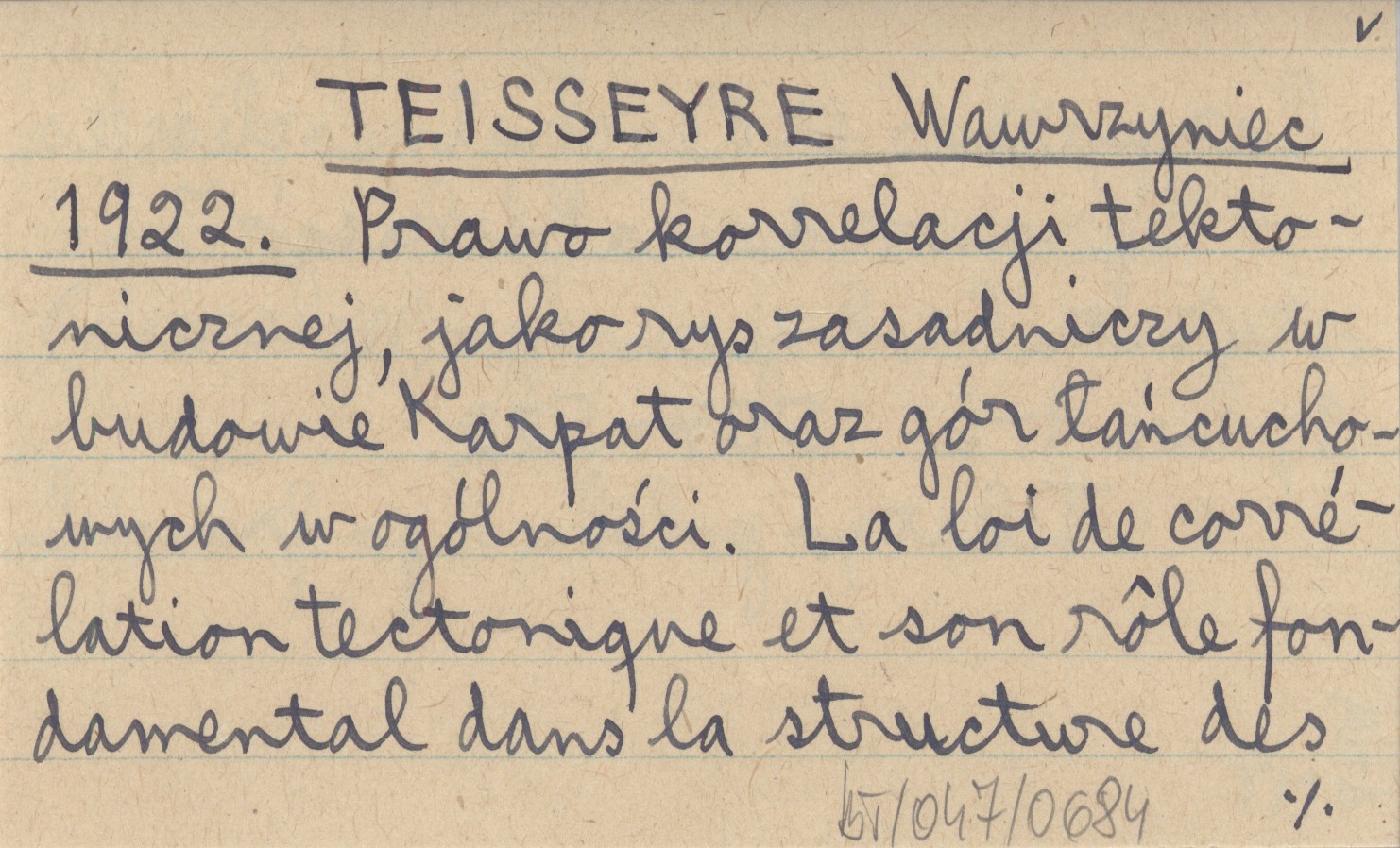 TEISSEYRE Wawrzyniec 1922 Prawo korrelacji tektonicznej, jako rys zasadniczy w budowie Karpat oraz gór łańcuchowych w ogólności. La loi de corrélation tectonique et son rôle fondamental dans la structure des Carpathes et des Chaînes plissées.